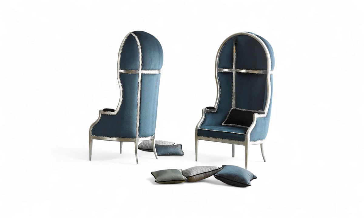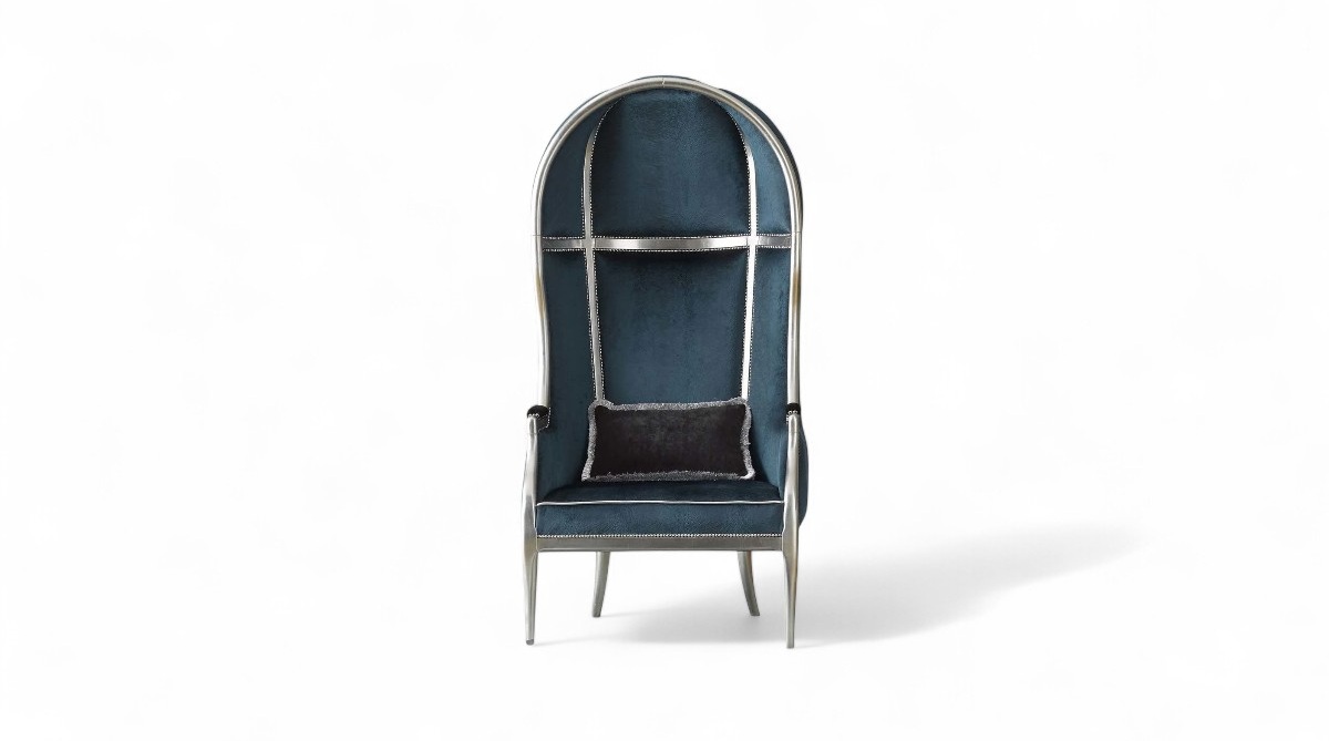 The Sapphire Majesty Canopy Chair is perfect for upscale living rooms, boutique lounges, luxury hotels, or private offices. This canopy chair offers both elegance and intimacy. Its iconic form makes it not only a functional seating option but also a centrepiece that elevates any space with high-end artistry.
