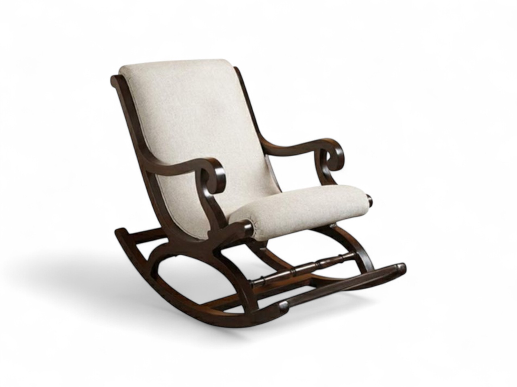 Made from solid hardwood and upholstered in soft, neutral fabric, the Serene Scroll Rocker adds warmth and charm to any room. Whether you’re reading, resting, or simply unwinding, this chair offers smooth motion and lasting comfort.