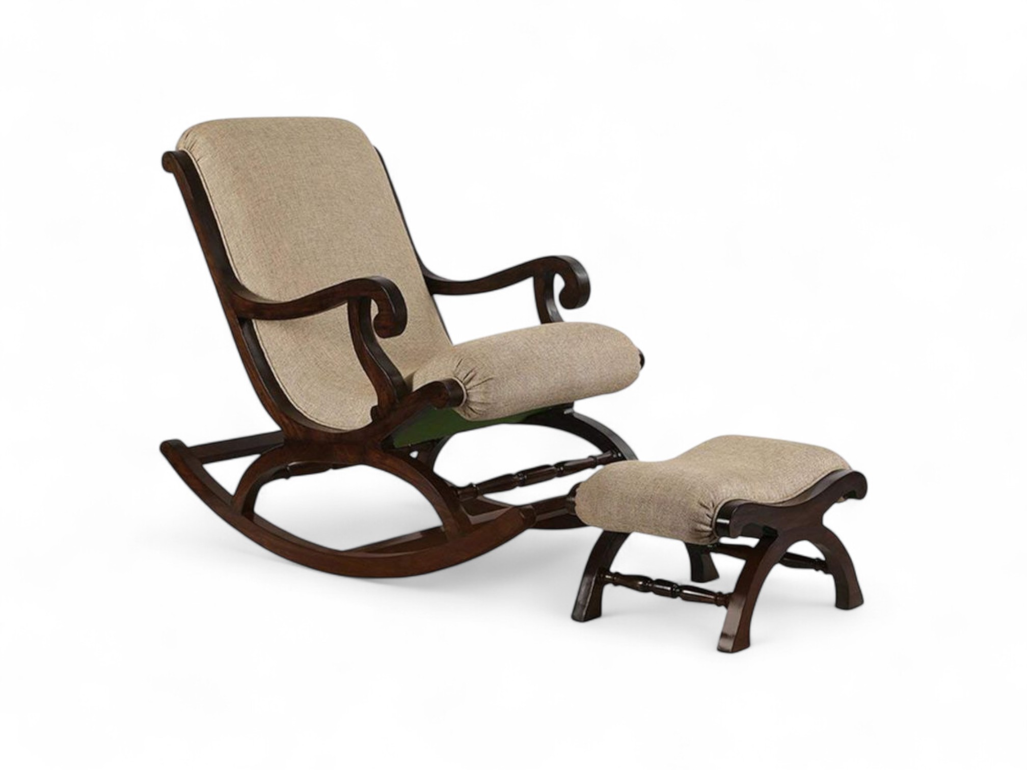 The Serene Scroll Rocker combines timeless elegance with everyday comfort. Its curved wooden frame and scroll-style arms create a classic look that works well in both traditional and modern interiors. The cushioned backrest and seat provide excellent support, making this rocker perfect for long, relaxing moments.