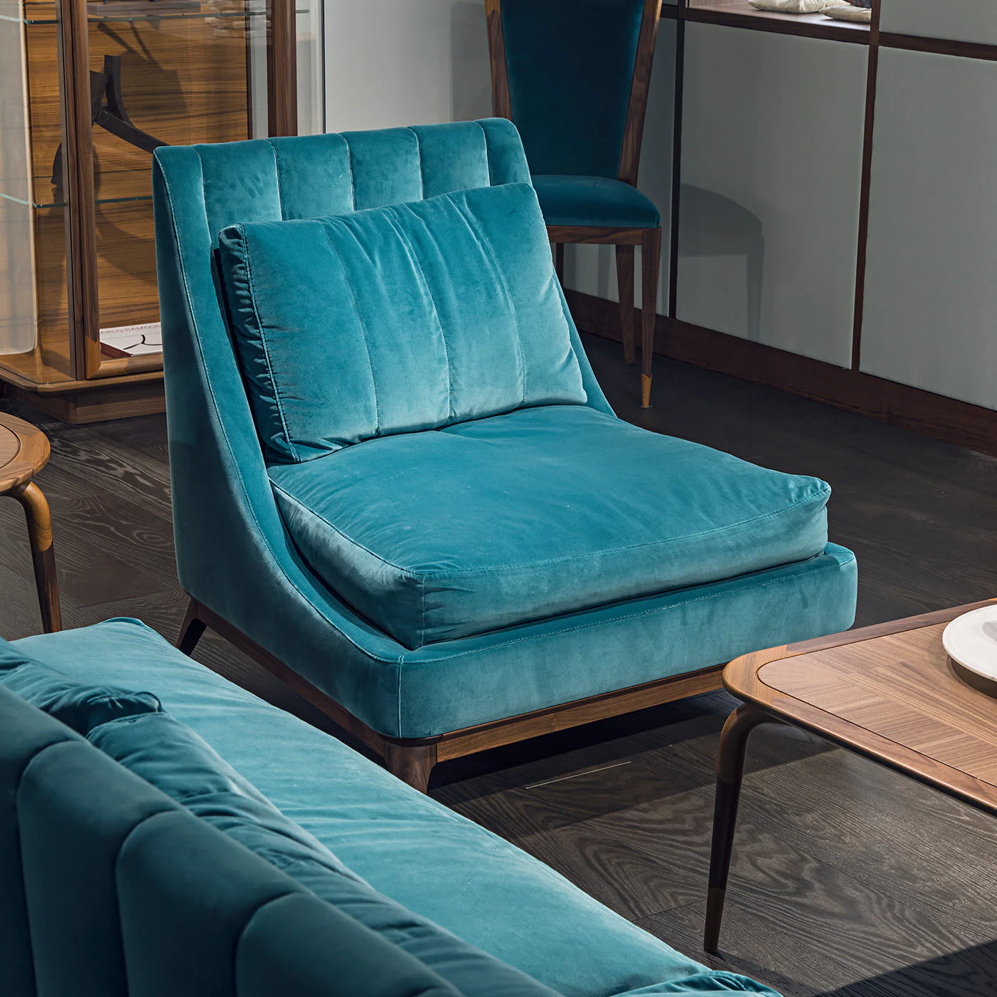 Expertly crafted with a solid hardwood frame, this lounge chair offers enduring strength and comfort. The plush cushioning ensures generous support, ideal for extended seating. Designed for both relaxation and refined decor, the Teal Serenity Lounge Chair becomes a statement piece in modern lounges, reading corners, or open-concept spaces.