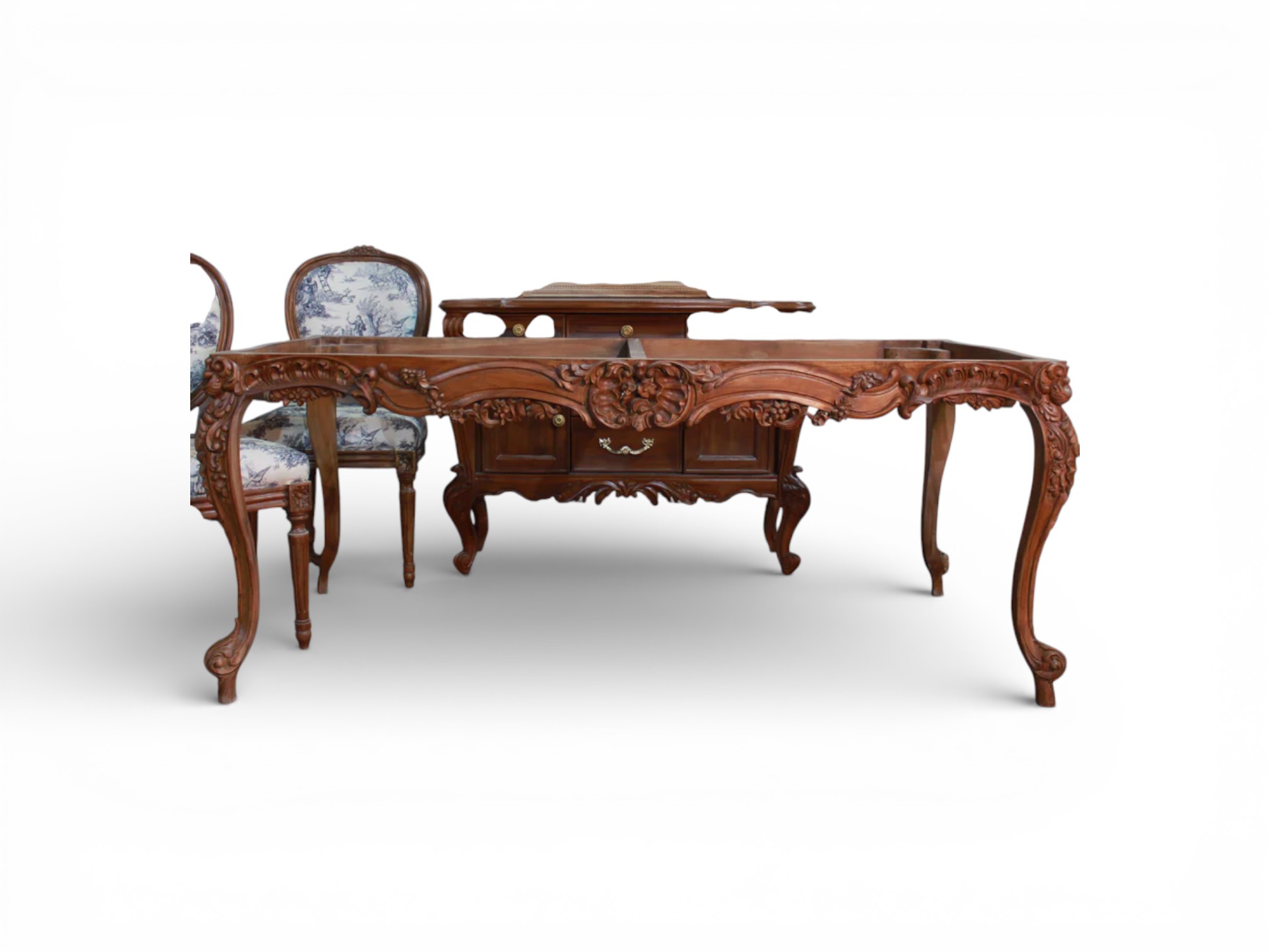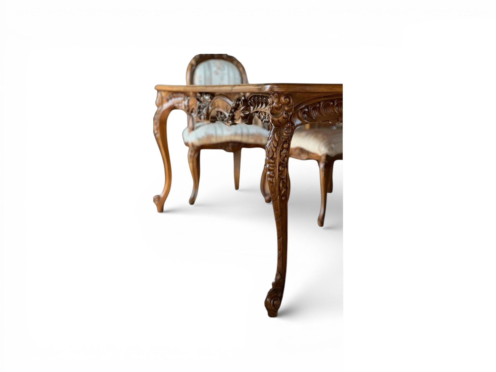 Crafted for grand gatherings and everyday elegance alike, this dining table blends traditional artistry with enduring functionality. The smooth surface allows effortless table settings, while the solid construction ensures long-term durability. Consequently, it pairs beautifully with upholstered or cane-back chairs, elevating dining rooms with a timeless heritage appeal that never feels overstated.