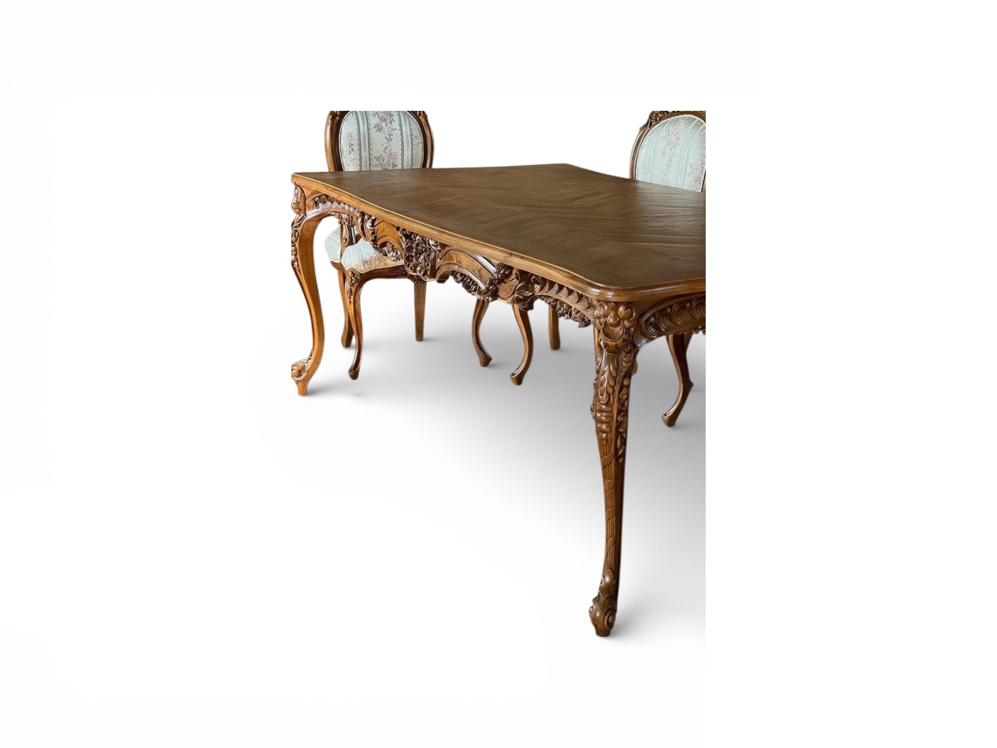 The Valemont Heritage Dining Table is a refined expression of classic European craftsmanship, designed to anchor formal dining spaces with warmth and distinction. Its expansive tabletop highlights rich natural wood grains, while the hand-carved apron showcases intricate detailing that adds depth and character to the overall silhouette. Moreover, the gracefully contoured legs provide a balanced stance, making the Valemont Heritage Dining Table both visually commanding and structurally dependable.