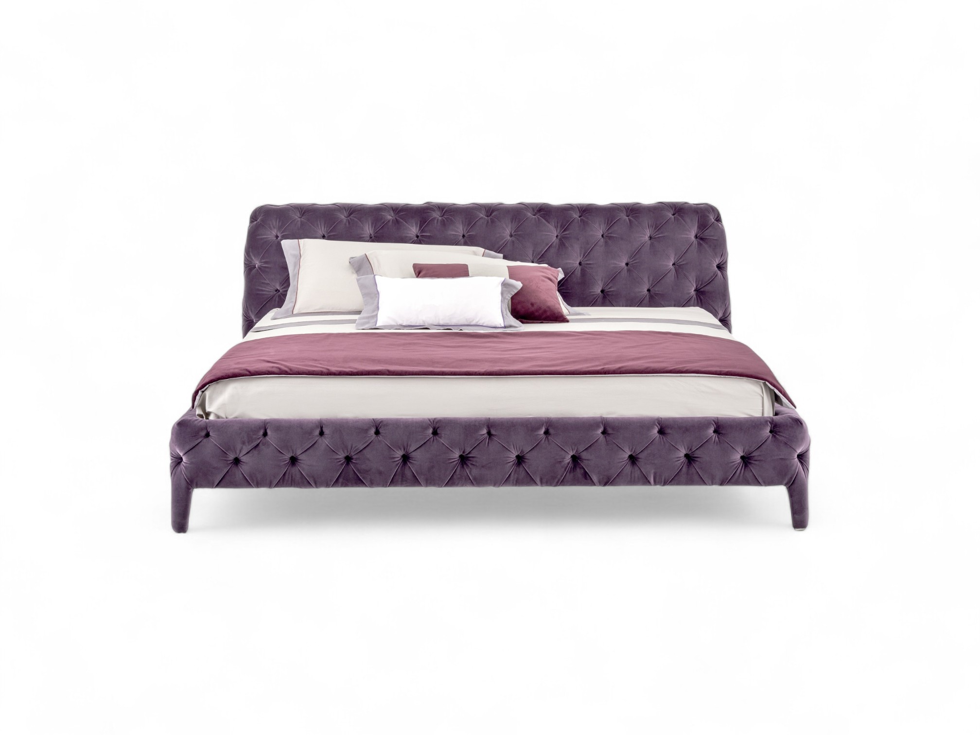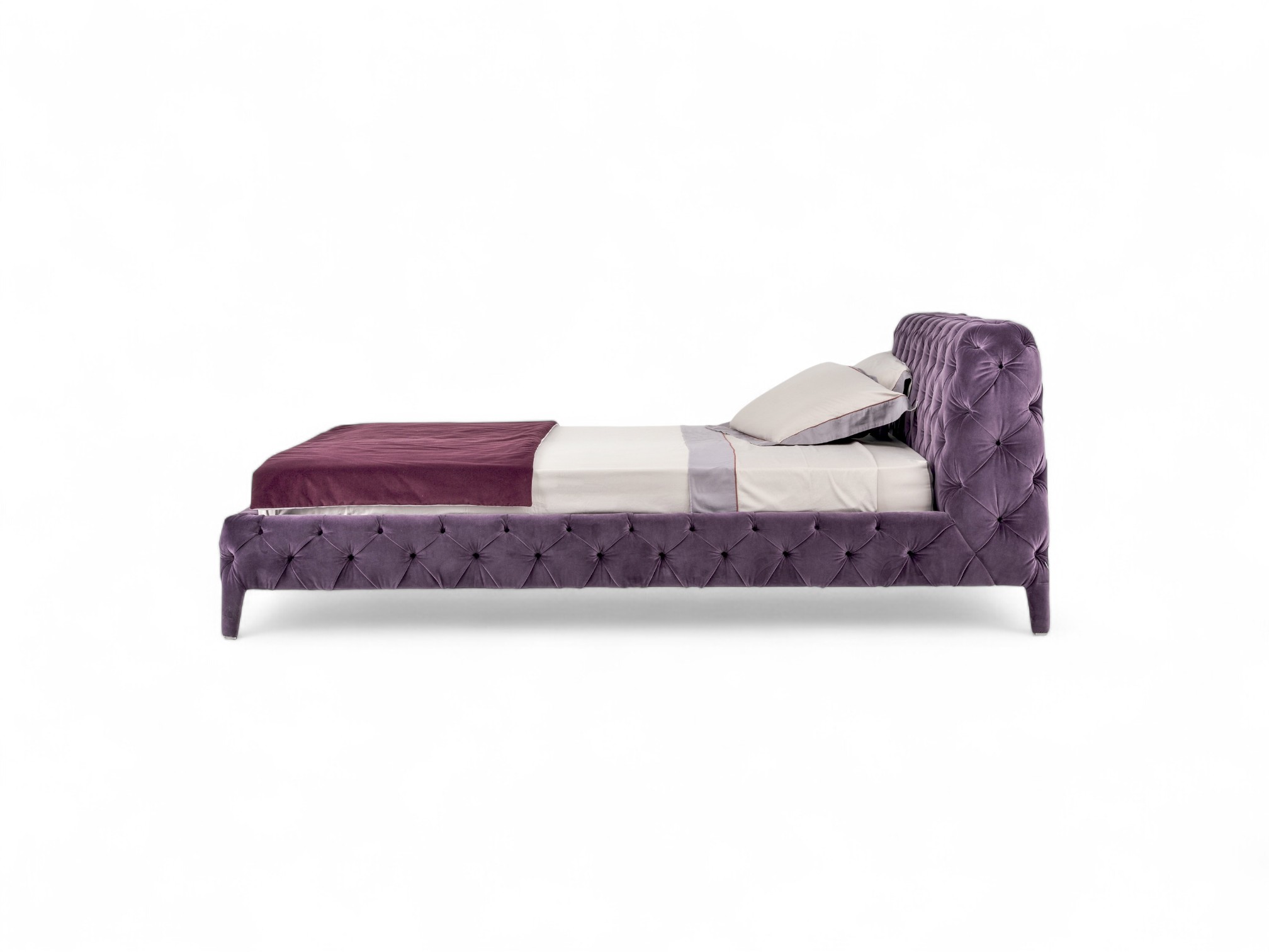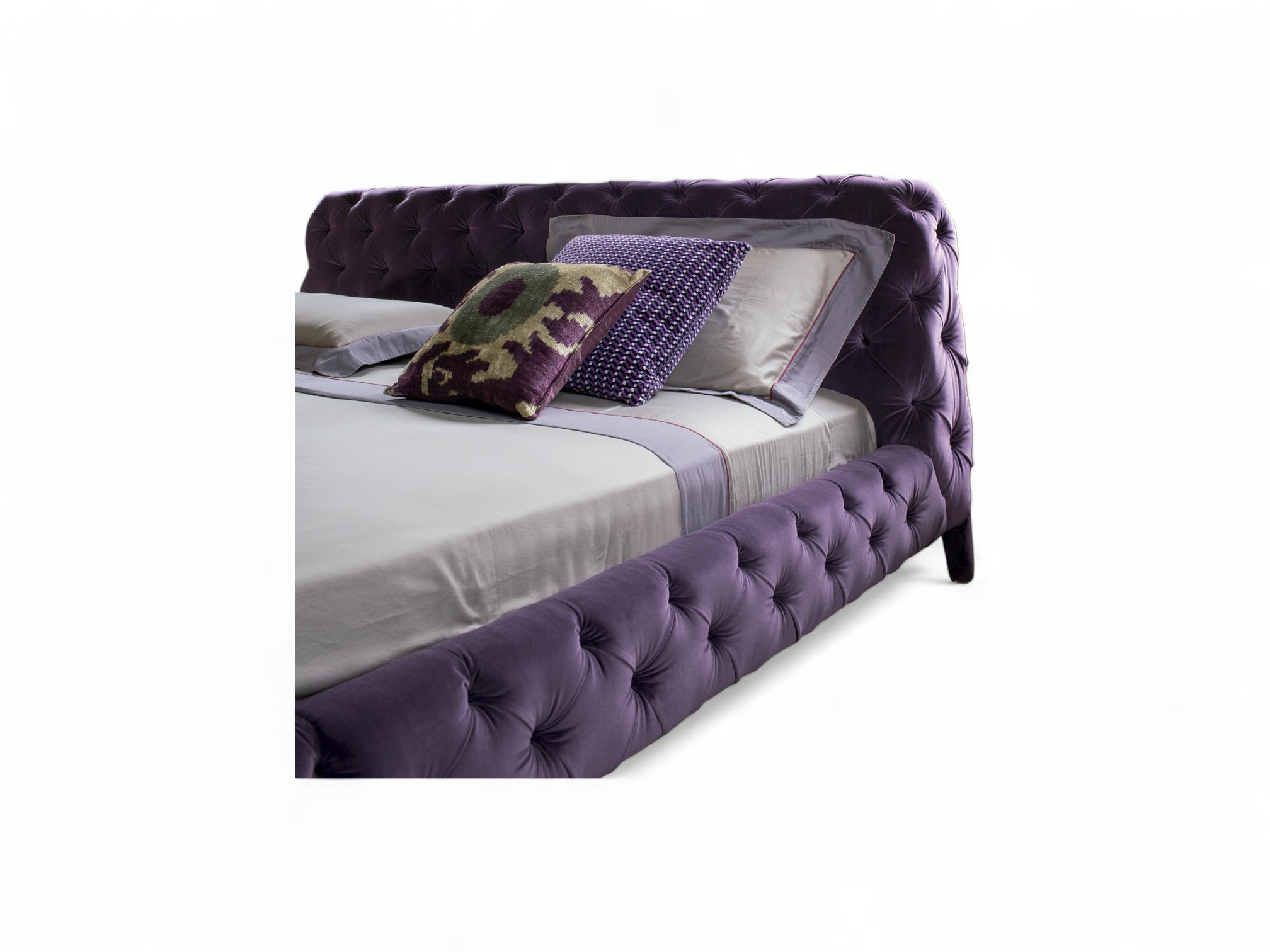 The Velvet Twilight Bed brings a rich sense of drama and luxury to your bedroom with its deep, plush upholstery and sophisticated silhouette. The fully tufted headboard and frame, wrapped in soft violet velvet, create a striking visual impact while offering supreme comfort. With its elegant curves and low-profile structure, this bed becomes the centrepiece of any refined interior.