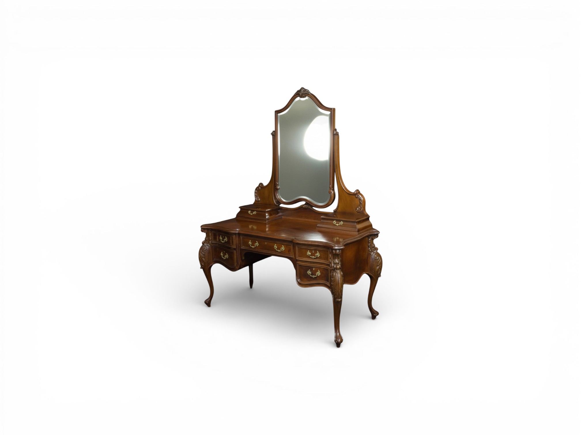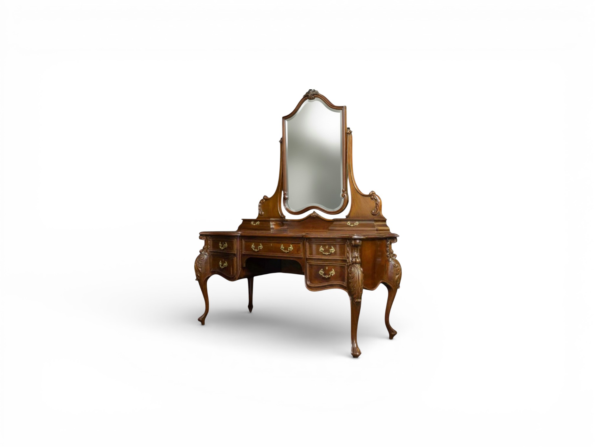 Crafted with precision, this dressing table offers functional storage through smoothly aligned drawers that keep essentials organised with ease. Moreover, the sturdy legs and finely contoured edges ensure lasting stability and elegance, making it an enduring statement piece that complements both traditional and heritage-inspired interiors.