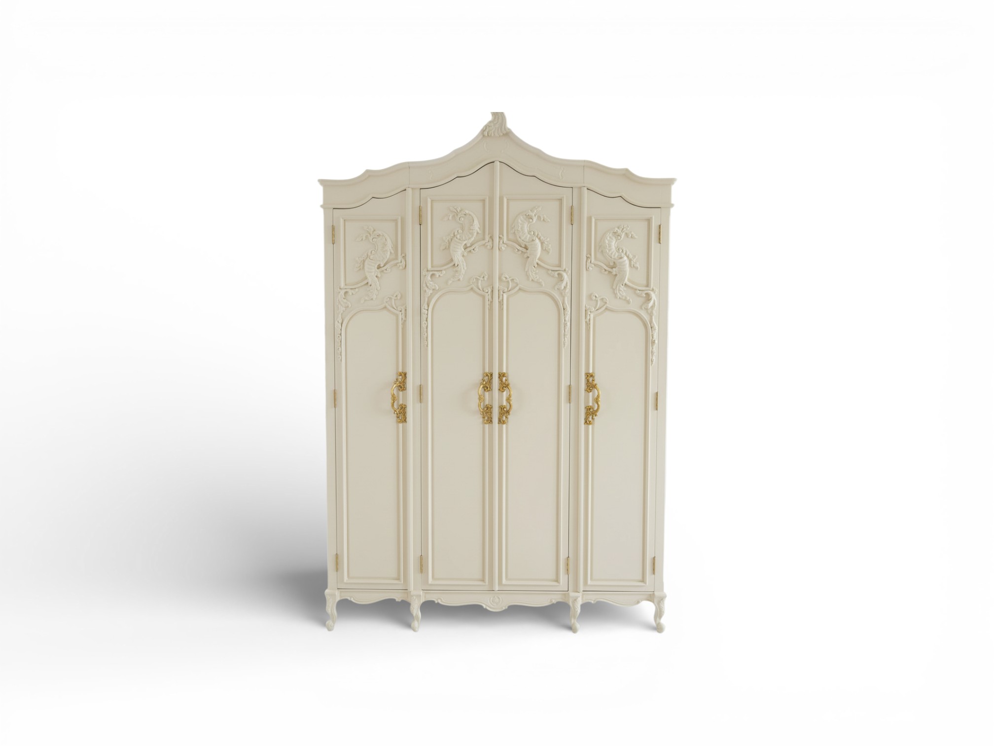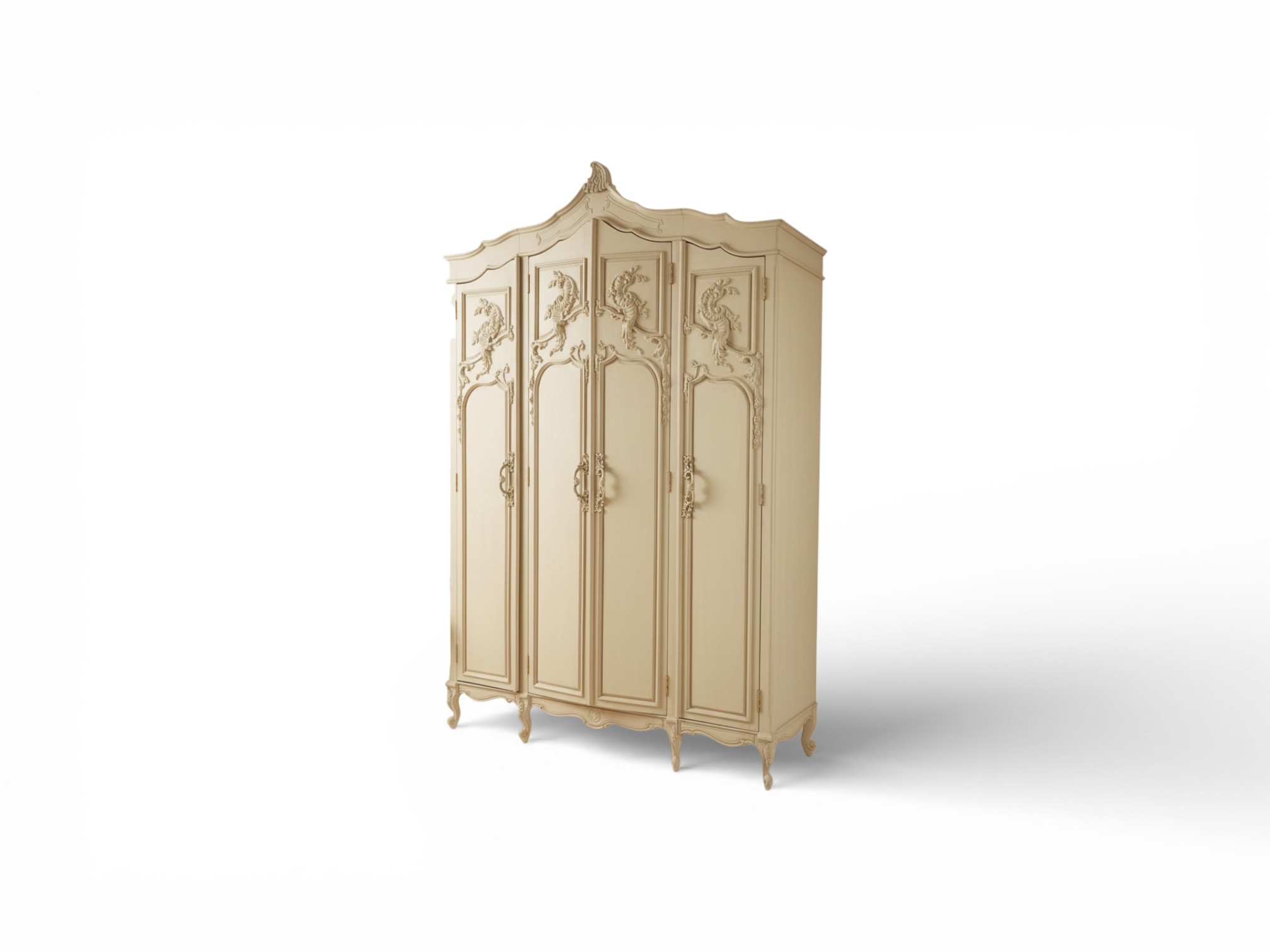 The Wellington Grand Wardrobe presents a stately European silhouette defined by its four-door façade, sculpted crown, and flowing carved motifs. Designed for luxury bedrooms, the Wellington Grand Wardrobe brings a balanced sense of grandeur while maintaining clean vertical proportions, allowing it to anchor large spaces without appearing overwhelming.
